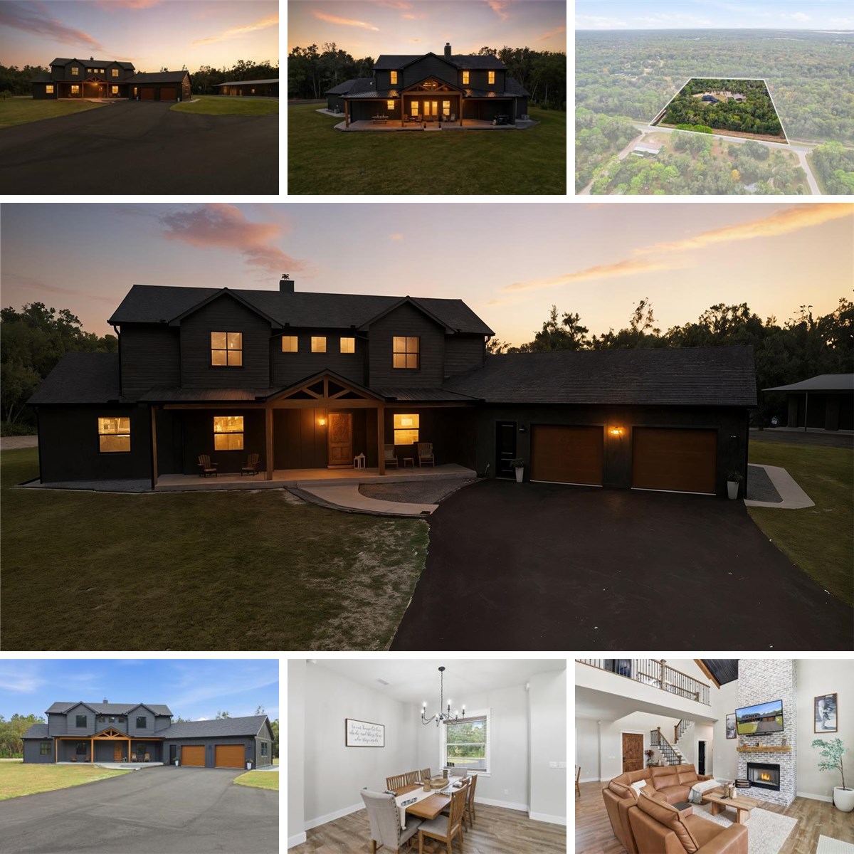 Welcome to your dream property — a brand new 2025-built custom home perfectly situated on 10 beautiful acres, offering the ideal blend of luxury, functionality, and country living. This stunning 5-bedroom, 3 full bath, and 2 half bath home was thoughtfully designed with space and comfort in mind. Step inside to an open-concept floor plan featuring a dedicated home office and an additional flex/bonus room, perfect for a media space, gym, or guest suite. The home is energy-efficient and spray-foam insulated throughout, equipped with two hot water heaters and two HVAC units to keep every room perfectly comfortable year-round. For added peace of mind, a solid poured-concrete safe room is built right into the home. Outside, you’ll find a newly paved blacktop driveway leading to a dream setup for hobbyists or professionals: a 30x70 workshop with full spray-foam insulation, electric service, and 12-ft lean-tos on both the front and back for extra covered space. The workshop also includes a car lift and a 50-amp RV hookup, making it a true multi-use space for all your projects and toys. Enjoy the peace and privacy of country living with plenty of room to expand, garden, or simply relax on your own private acreage — all while being just a short drive from town conveniences. Step out and enjoy the natural beauty and abundant wildlife that call this property home — from peaceful deer to songbirds and other native species, this acreage offers the perfect country retreat for outdoor enthusiasts and nature lovers.