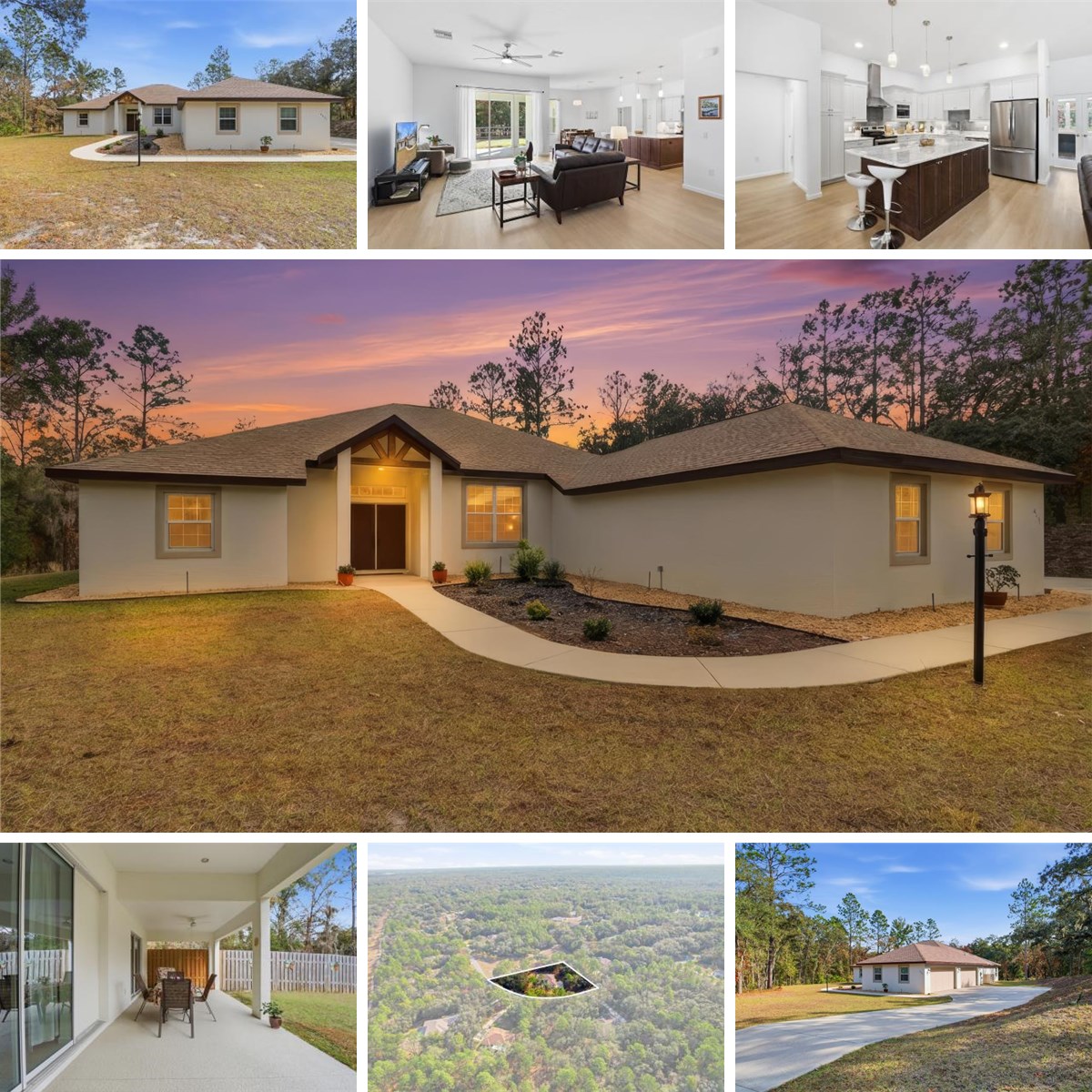 Welcome to Fairview Estates in Citrus Hills—an exclusive, deed-restricted community known for natural beauty and a friendly, yet quiet setting. This solidly built 2023 home features an open floor plan with 3 bedrooms, 2 bathrooms, plus a separate office—ideal for working from home or pursuing hobbies. Set on 1.2 wooded acres, the property is exceptionally private, with a fenced yard ideal for pets and surrounded by mature trees and natural vegetation (no pesticides used on the lawn - for pet safety). Inside, the custom-designed kitchen is the heart of the home, with a huge granite island, Italian tile backsplash, and a relaxed flow that creates a welcoming central gathering space. Plenty of light flows into all areas of this home, giving an airy ambiance. A massive 4-car garage provides abundant room for vehicles, boats, bikes, and a workshop. Enjoy breezy outdoor living on the covered back porch, perfect for dining al fresco and taking in the tranquil surroundings. If you choose to add a pool in the future, the owners had all the needed electrical wiring done on the exterior of the home to make that an easy option! (There's no required social membership to Citrus Hills Golf Club.) Conveniently located near shopping, schools, and restaurants, with the 46-mile Withlacoochee biking and hiking trail nearby. Boat access to lakes, springs, and the Gulf is just minutes away. Home shows like new. Secluded and lovely—this "rare dove" offers the opportunity to enjoy a peaceful, nature-inspired lifestyle.