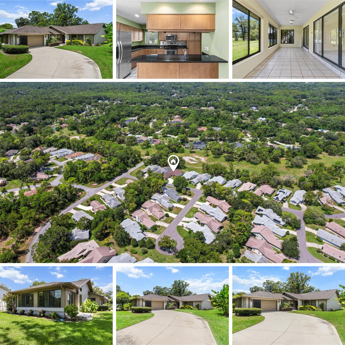 LOCATION! LOCATION! Discover your carefree retreat on the 2nd green of the Oak Course — where every day feels like a vacation. Bring your imagination and your paint swatches to this charming three-bedroom detached villa, perfectly perched right on the lush, rolling fairway. From your glass-enclosed, tiled Florida room, watch the morning sun rise over the course or unwind as the sky turns gold at sunset — your special front-row seat to nature’s beauty. Step inside and feel the airy openness of vaulted ceilings that create a sense of space and light. The heart of the home, a welcoming family room, flows into a thoughtfully updated kitchen boasting rich wood cabinetry and striking black granite countertops — a timeless blend of warmth and elegance installed by Deem. Newer appliances make daily living effortless, while the adjacent family space invites cozy evenings and laughter-filled gatherings. The owner’s suite is designed for comfort and privacy with its unique Jack and Jill bath layout, complete with dual walk-in closets and a luxurious snail shower — a quiet escape after a day on the course. The guest bedroom transforms effortlessly thanks to a built-in Murphy bed and custom desk, making it perfect for visiting friends or your own creative workspace. This villa has been lovingly maintained, offering peace of mind with a new roof installed in 2014 and an energy-efficient 16 SEER AC from the same year. An extra-large garage, indoor laundry, and a screened garage door add everyday convenience to this inviting home. More than just a villa, this is a lifestyle — maintenance-free living that frees your days for championship golf, exploring nearby shopping and dining, or simply soaking in the tranquility of your beautiful golf course view. Maybe consider this as a Rental until that retirement day arrives! The choice is yours! Come home to the place where your next chapter begins. Priced to sell and ready for your personal touch — make this villa your home today!